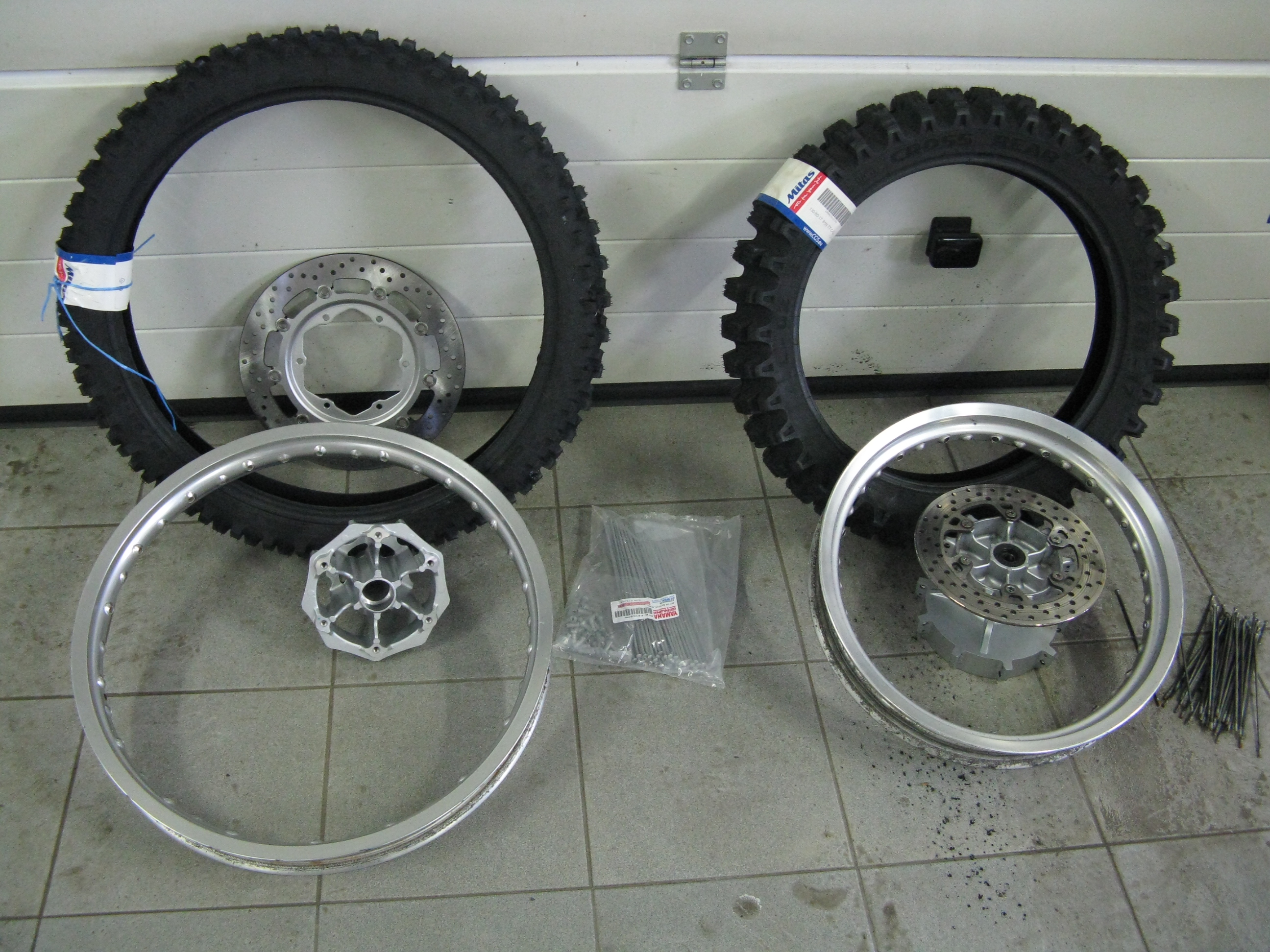 Tak jsem se do toho nakonec pustil a rozhodl jsem se, že budu mít ještě Rková kola k XT660X :) . Hledal jsem někoho, kdo se již do něčeho podobného pustil, ale ani na xt660.com se nenašel podobný "pacient", tak snad tohle téma poslouží budoucím generacím :mrgreen: a ušetří jim to několik dnů času.