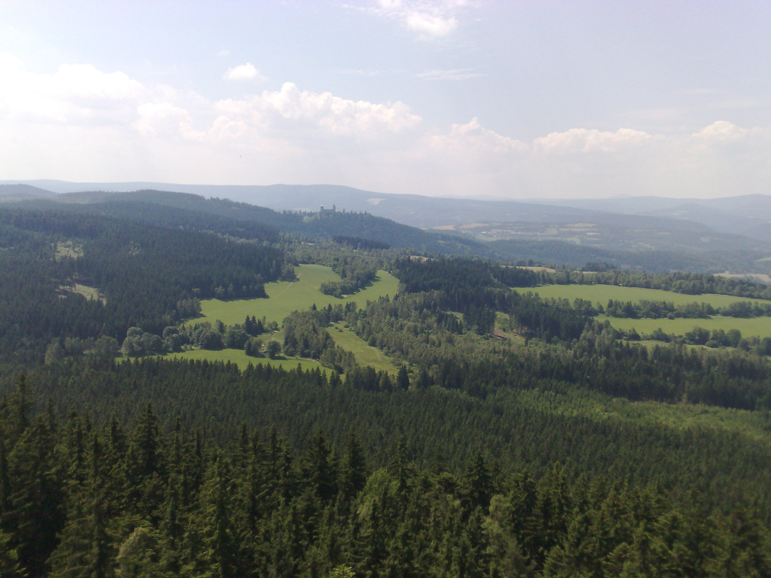 . Za chvíli jsme dorazili na nově vybudovanou rozhlednu. Turisté uskakovali, padali do příkopů. Jeli jsme kolem nich pořádnou kudlu a ohazovali je kamením. A to všichni - bez vyjímky! Dělám si samozřejmě srandu. Byl jsem překvapen, že nikdo nic neříkal. Dojeli jsme až na drzovku přímo pod vyhlídku.